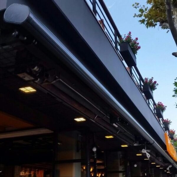 • Kompakt ve Şık Tasarım: Kapandığında kumaş ve mekanizma tamamen kasetin içinde kalır, bu da tenteyi uzun ömürlü ve temiz tutar. Kapalı konumdayken bile dekoratif bir görünüm sunar.
